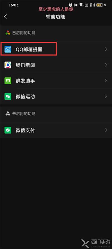 5.来到辅助功能的页面中点击【QQ邮箱提醒】;