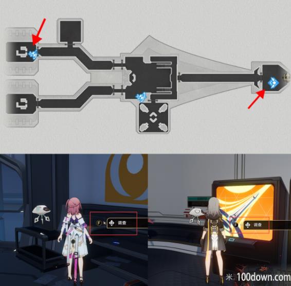 这是横过来的基座舱段地图,两个小机器人分别在地图两端。
