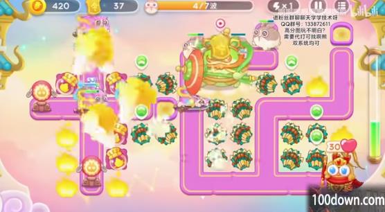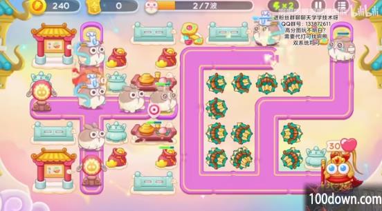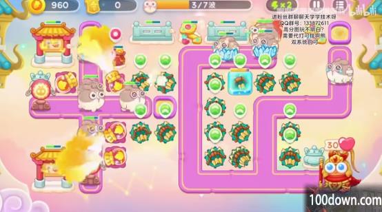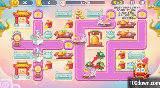 5、之后会有一个弹琵琶的兔子和冰冻兔,玩家要即使解冻炮塔,不要贪心,左侧可以多放毒针和喷火器。