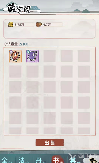 3、进入藏宝阁之后,在书卷中就可以看到目前已经获取的心法;