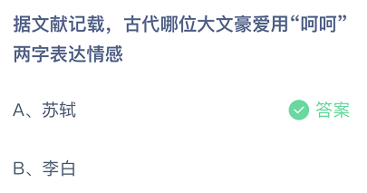 据文献记载,古代哪位大文豪爱用“呵呵”两字表达情感?这是今日的蚂蚁庄园小课堂的问题,很多玩家都比较关注这个话题,接下来就让小编为大家详细介绍一下,希望可以帮助到大家。
