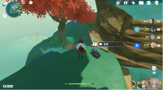 2、然后传送到山顶锚点,来到右侧假山,半山腰的悬崖上与[豆助]对话,即可开启任务。