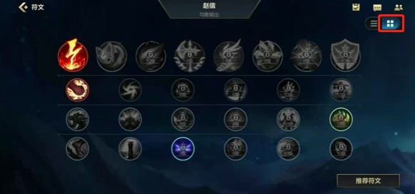 4、如果有玩家不知道怎么设置,可以点击下方的推荐,就可以一键设置符文。