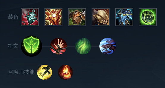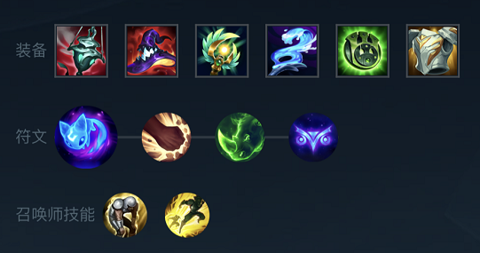 这套可以变化的就是荆棘背心,面对塞纳,琴女等等有回血的辅助上减治疗是最好的攻防最好的装备,附魔钢铁烈阳给队友集体的盾也是很好的救场的附魔,偶尔也可以看情况切换救赎探视野或者石像鬼增加血量容错率。