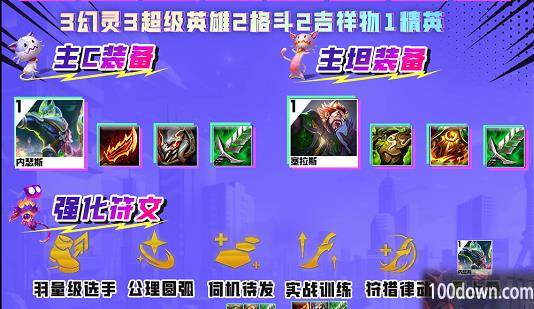 2、阵容羁绊:3幻灵3超级英雄2格斗2吉祥物1精英