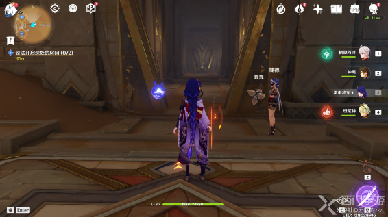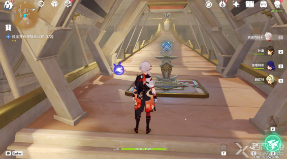 我们进入房间以后,我们会看到一个沙漏,我们需要开启沙漏挑战,不需要完成,因为不开启,我们无法飞到最上面拿到我们的元能火种;