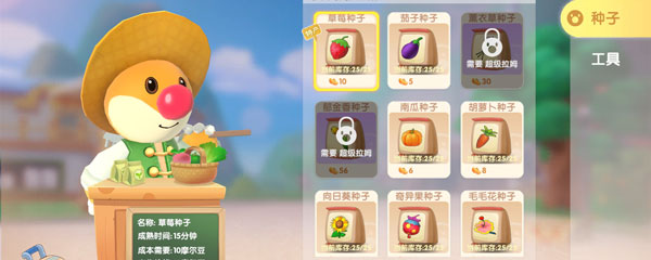 梅森种子商店可以购买到特产种子,如果你是草莓特产,那可以可以消费摩尔豆购买到,如果不是,则需要通过其他的方式来获得;