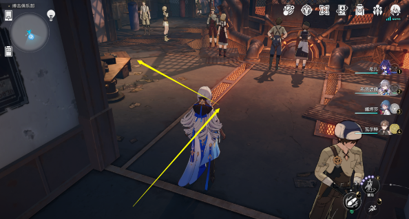 1、首先来到磐岩镇左上角的搏击俱乐部(黄圈所标的位置),进入搏击俱乐部;