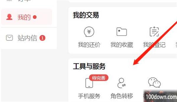 2、在藏宝阁中登入自己的帐号,找到“我的”在工具与服务中选择角色转移。