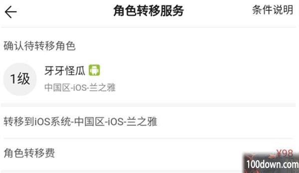 5、选好角色后支付角色转移费(98元人民币)即可。【注意:帐号需为网易官方安卓或苹果系统才能转移】