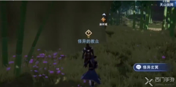 2、对话之后,玩家转头,在后方李二伯npc的左侧可以看到有“恶搞怪异教众”,玩家和他们对话即可开启任务;