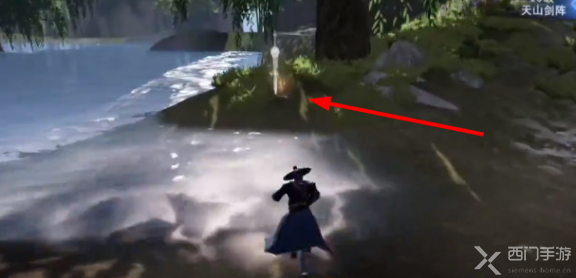 3、然后跟着任意指引走,在附近可以看到有一个剑的指引,过去看看,看完剧情回去;