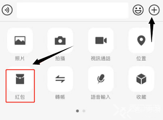 3、领取红包封面后进入好友聊天界面,点击下面的【+】选项,点击后弹出许多选项,点击其中的【红包】;
