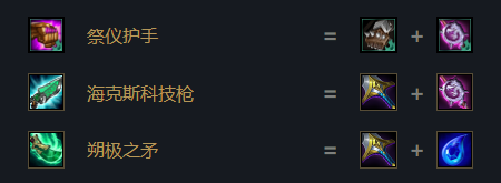 使用黑暗装备蔡仪护手让维克兹对敌人造成暴击,而本套其他的装备可以治疗来自技能造成的魔法伤害和真实伤害,让维克兹的普攻命中时获得额外的法力。
