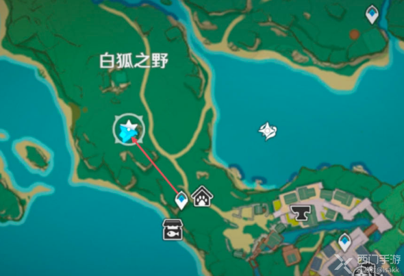 1、首先传送到渊下宫【蛇肠之路】最下方的那个传送锚点,然后往左侧走到星星标记的位置;