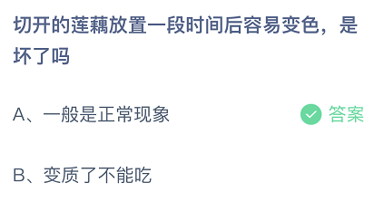 切开的莲藕放置一段时间后容易变色,是坏了吗-蚂蚁庄园9月11日答案