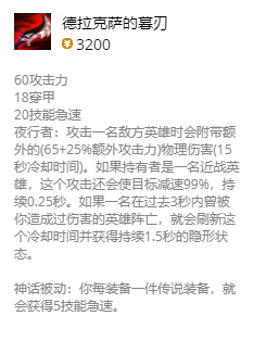 幽梦、无尽、攻速鞋、夜刃、幕刃、护手;