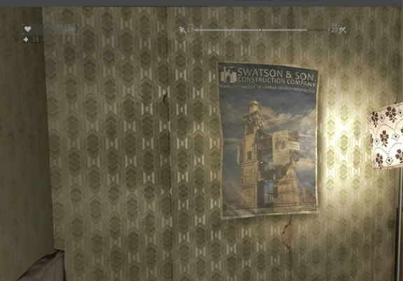 2、玩家直接进入房间,之后可以找到墙上的海报,如下图: