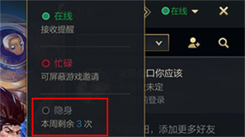 3、玩家们在游戏里面可以自由的进行设置在线/隐身/忙碌等状态,但是要注意的是一周只能设置三次。