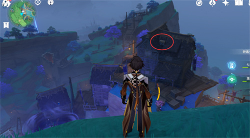 4.第三把钥匙位置如下图所示,来到悬崖边,飞到远方屋顶,上面就有一个普通宝箱,钥匙就在里面;