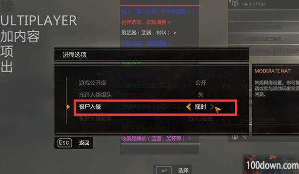 2、在选项中将丧尸入侵设置修改为“随时”,再次点击“ESC建”返回继续游戏,即可进入入侵模式;