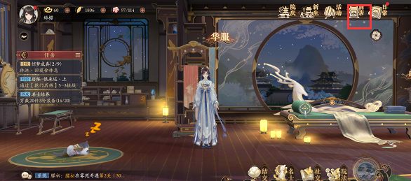 1、撸猫狂魔:摸猫10次(庭院左边逗猫)