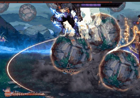 BOSS将会召唤带有印记的石球,需要跳跃顶球把球顶破,否则会出现大范围AOE,同时附加丧失DEBUFF(低血基本无视);