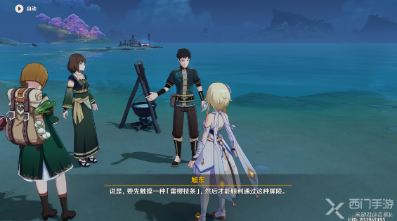 3、靠近「雷樱枝条」召唤雷种子,携带雷种子进入「若雷结界」,获取「特殊的绯樱绣球」交给旭东;
