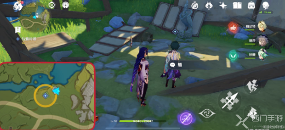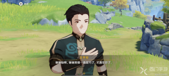 2、在破庙附近发现npc王平安被两只丘丘人包围起来了,只要将丘丘人打败即可自动触发与王平安的对话;