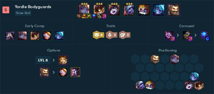 约德尔们很容易成为三星英雄,所以是非常容易升级和刷英雄的,基本上不需要D太多次,可以快速将核心约德尔人升级到三星,给予合适装备即可吃烂分。