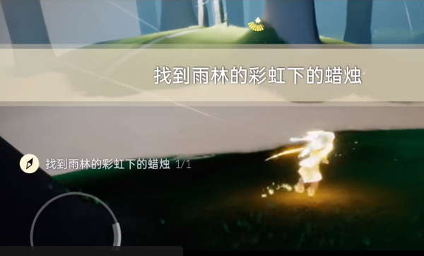 4、找到雨林的彩虹下的蜡烛,第四个任务在雨林下方云洞的位置往下跳,然后直走就能够看到彩虹。