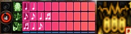 通过释放乐谱同时输入对应音符可激活技能,给队友提供各样的属性加成例如:加速,回血,提升技能范围等等。