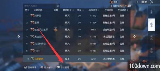 2、在营地界面的右侧一列中选择【成员】,然后点击下方的【职位管理】;