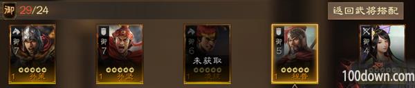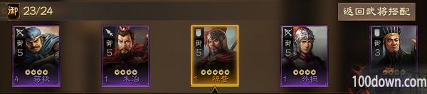 该阵容主打单体兵刃输出,而且孙策和孙坚都具有一定控制能力,前者提供震慑能废掉地方一名武将,后者提供嘲讽效果保护友军免于伤害,这样队伍整体输出频率提升了,再搭配凌统为友军带来先攻和必中效果,让我方攻击能力再次提升,而程普和小乔则在队伍中进行防御和兵力回复。