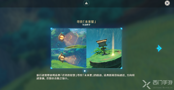 (1)旅行者需要使用道具「芭努的智慧」寻找「未来星」的踪迹。道具距离目标越近,方向将越准确,范围也会随之缩小。