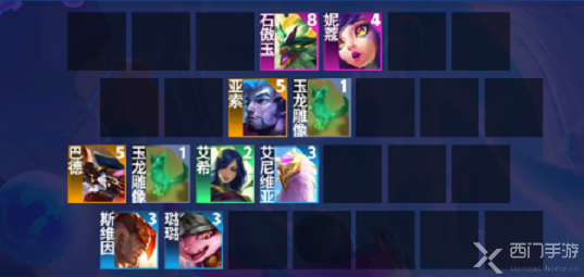 1、阵容成员:艾希、斯维因、艾尼维亚、璐璐、妮蔻、石傲玉龙、巴德、亚索
