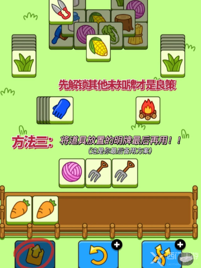 3、正下方放置道具的牌最后再使用,避免失误时挽救一回。