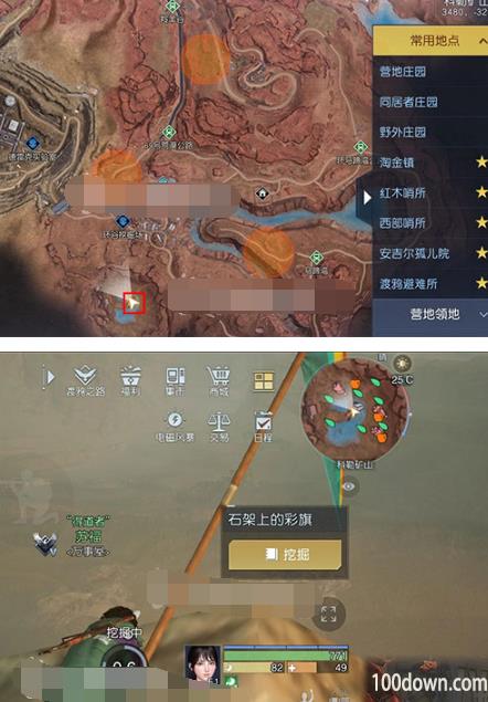 先传送到【环谷挖掘场】,之后一直往下走看到一个水塘,在水塘附有石架,调查石架上的彩旗即可挖掘得到水上石架宝藏。