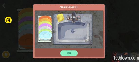 2、玩家先打开水龙头的右侧开关,然后把盘子直接放在水池里;