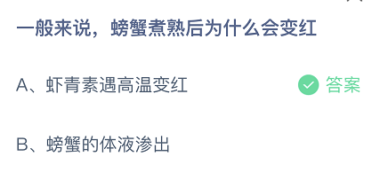 一般来说,螃蟹煮熟后为什么会变红-蚂蚁庄园8月18日答案