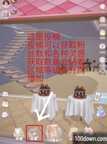 3、玩家在游戏界面的下方位置就可以看到有【投稿】的功能,投稿可以获取粉丝数和各种灵感;