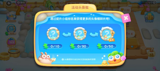 获得的【搓澡巾】还可参与小组排名,每日24点进行排名结算获得奖励,奖励可用来兑换活动限定头像框哦~