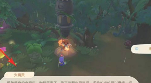 4.玩家在靠近毛毛头部落左上角的柱子时,会出现一个交互键,点击火精灵就会出现;