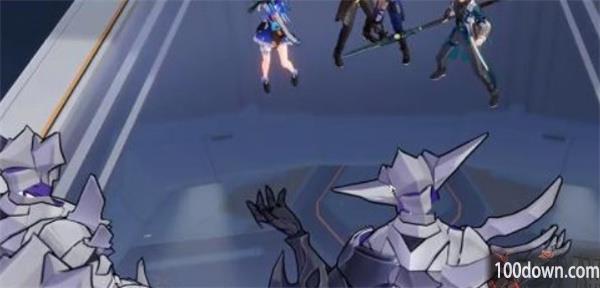 2、出来以后会看见一个反物质战队,玩家必须向前击败这东西,玩家在击败的时候使用和对手缺点同样的属性攻击能够减少韧性;