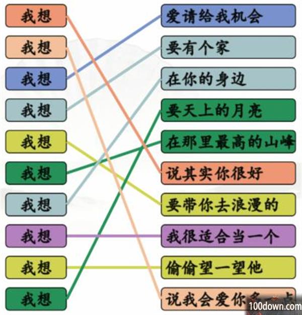 汉字找茬王是最近抖音上很火的益智烧脑解密类休闲小游戏,游戏内根据网络上的歌曲设计了很多连连看关卡,其中连我想的歌就是这样的关卡,下面就一起来看看本关攻略吧。