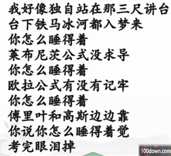 本关难度不大,只需玩家熟悉赐我考试版歌词即可,不熟悉的参考攻略即可。