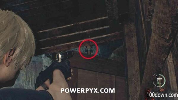 1、在地图上的湖畔聚落区(遇到体型较大的敌人和投炸弹的敌人),在中间投炸弹的敌人所在的房子的房梁上;