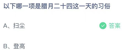 以下哪一项是腊月二十四这一天的习俗?这是近期一个比较热门的话题,很多玩家都比较关注这个方面的具体资料,通过下面的文章内容,就让我们一起来了解一下今日的蚂蚁庄园小课堂答案吧。