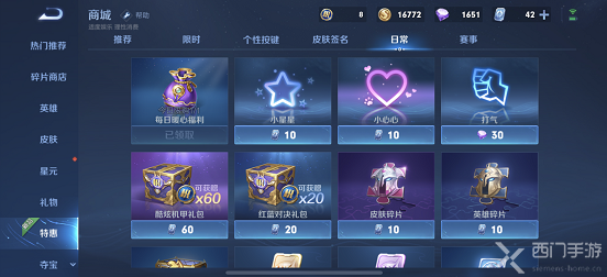 玩家在商城-特惠-日常中,是可以找到个性戳戳的,个性戳戳一共有三种,其中:小星星和小心心是需要10点券/个来购买的,而打气则是需要30钻石/个来购买。