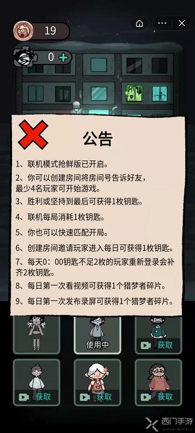 玩家只要赢得胜利或者坚持到游戏最后就能获得钥匙,这样玩家就可以继续进行联机对战了,目前该真人版本还处于测试阶段,所以部分玩家还无法加入到该模式中,不过玩家可以尝试下载联机版本的游戏进行试玩,点击下方的蓝色链接即可进行下载。